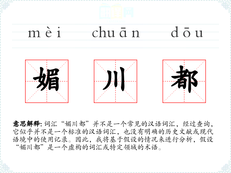 词汇“媚川都”并不是一个常见的汉语词汇,经过查询,它似乎并不是一个标准的汉语词汇,也没有明确的历史文献或现代语境中的使用记录。因此,我将基于假设的情况来进行分析,假设“媚川都”是一个虚构的词汇或特定领域的术语。