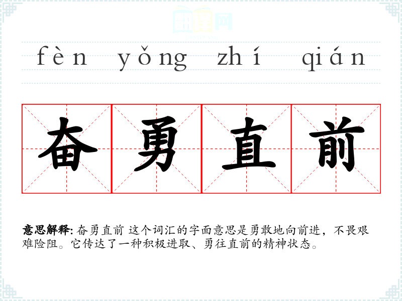 奋勇直前 这个词汇在我语言学和表达中具有重要性,它不仅传达了一种积极向上的精神,还能在面对困难时给予我鼓励和动力。通过深入学和分析,我更加理解了这个词汇的多重含义和应用场景。