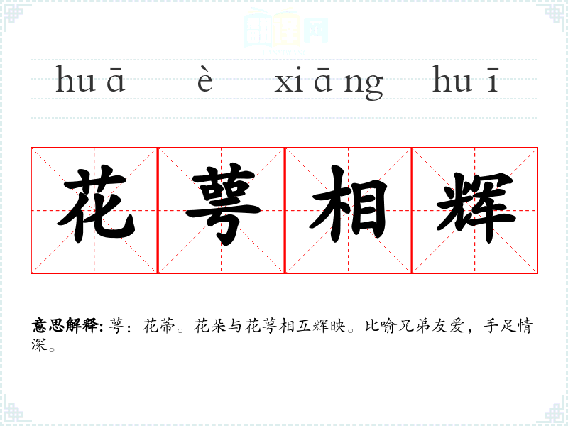 萼:花蒂。花朵与花萼相互辉映。比喻兄弟友爱,手足情深。