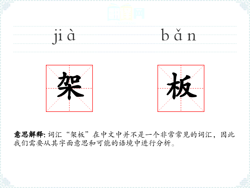 词汇“架板”在中文中并不是一个非常常见的词汇,因此我们需要从其字面意思和可能的语境中进行分析。
