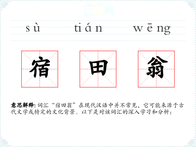 词汇“宿田翁”在现代汉语中并不常见,它可能来源于古代文学或特定的文化背景。以下是对该词汇的深入学*和分析: