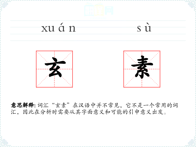 词汇“玄素”在汉语中并不常见,它不是一个常用的词汇,因此在分析时需要从其字面意义和可能的引申意义出发。