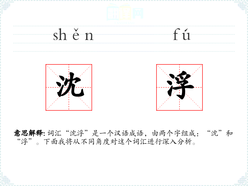 词汇“沈浮”是一个汉语成语,由两个字组成:“沈”和“浮”。下面我将从不同角度对这个词汇进行深入分析。