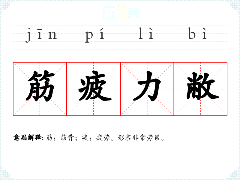 筋:筋骨;疲:疲劳。形容非常劳累。