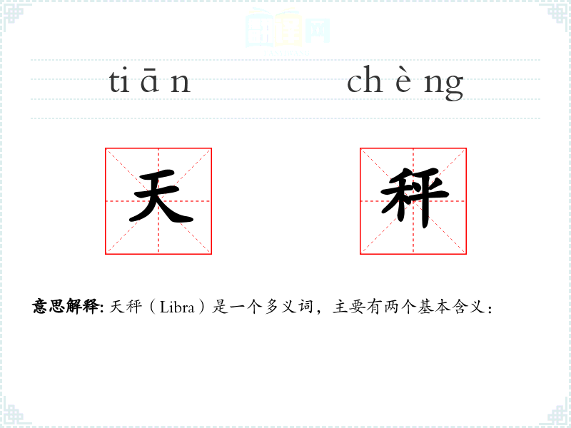 天秤(Libra)是一个多义词,主要有两个基本含义: