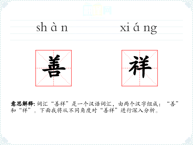 - 词源:“善”和“祥”都是古代汉语中常用的词汇,历史悠久。
