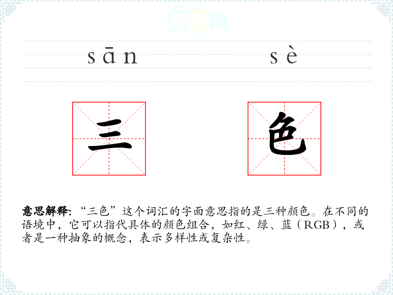 "三色"的意思解释、三色是什么意思由翻译网汉语词典查词提供。