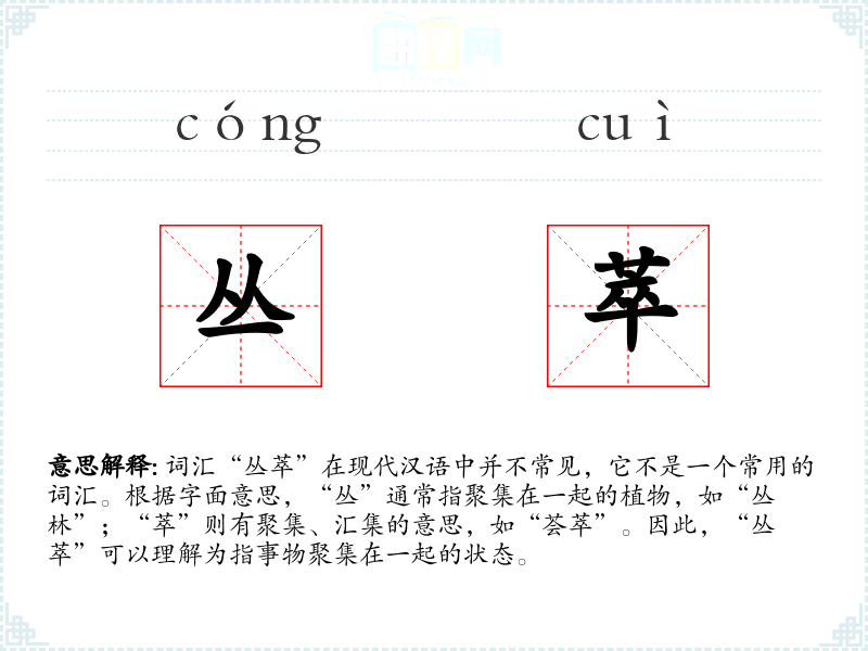 - 词源:“丛”和“萃”都是古汉语词汇,有着悠久的历史。
