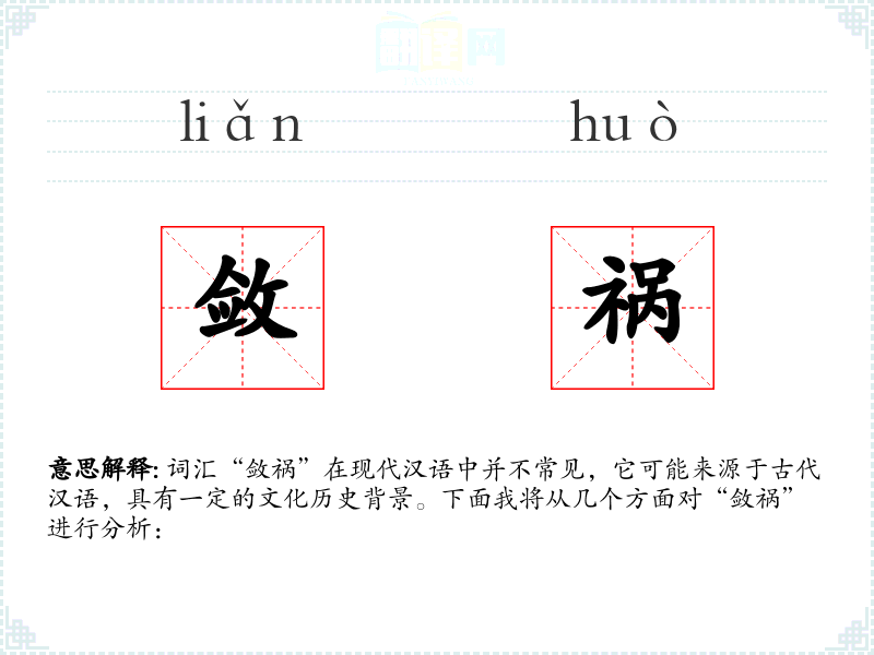 词汇“敛祸”在现代汉语中并不常见,它可能来源于古代汉语,具有一定的文化历史背景。下面我将从几个方面对“敛祸”进行分析:
