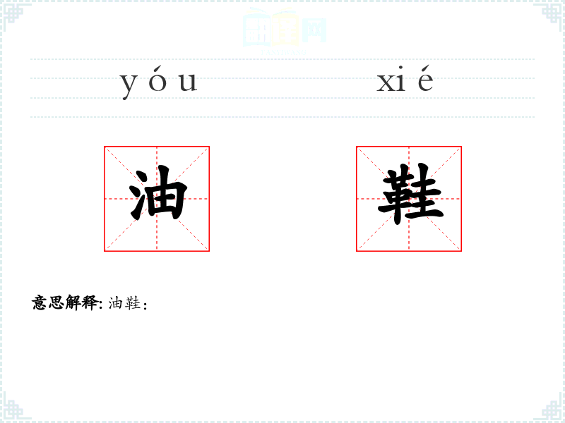 "油鞋"的意思解释、油鞋是什么意思由翻译网汉语词典查词提供。