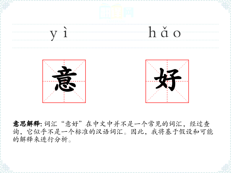词汇“意好”在中文中并不是一个常见的词汇,经过查询,它似乎不是一个标准的汉语词汇。因此,我将基于假设和可能的解释来进行分析。