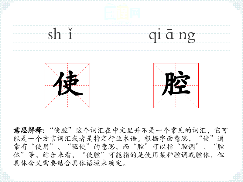 "使腔"的意思解释、使腔是什么意思由翻译网汉语词典查词提供。
