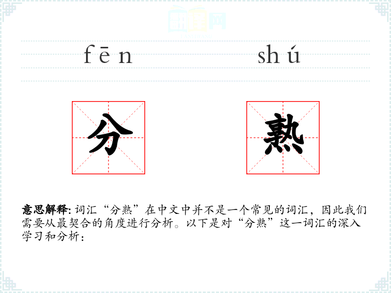 词汇“分熟”在中文中并不是一个常见的词汇,因此我们需要从最契合的角度进行分析。以下是对“分熟”这一词汇的深入学习和分析: