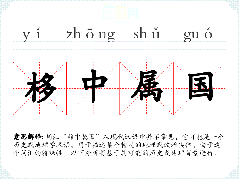 词汇“栘中属国”在现代汉语中并不常见,它可能是一个历史或地理学术语,用于描述某个特定的地理或政治实体。由于这个词汇的特殊性,以下分析将基于其可能的历史或地理背景进行。