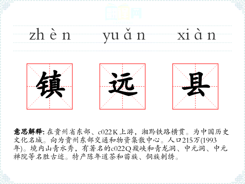 "镇远县"的意思解释、镇远县是什么意思由翻译网汉语词典查词提供。