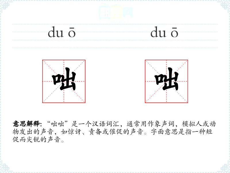 在不同语言中,类似的象声词可能存在,但其具体表达和使用情境可能有所不同。例如,英语中的“tsk tsk”可能与“咄咄”在表达责备或不满时有相似之处。