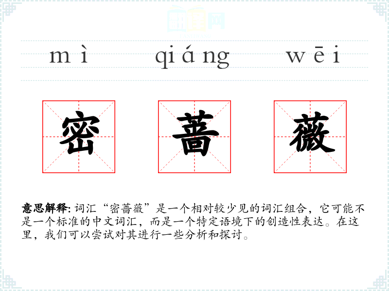 词汇“密蔷薇”是一个相对较少见的词汇组合,它可能不是一个标准的中文词汇,而是一个特定语境下的创造性表达。在这里,我们可以尝试对其进行一些分析和探讨。