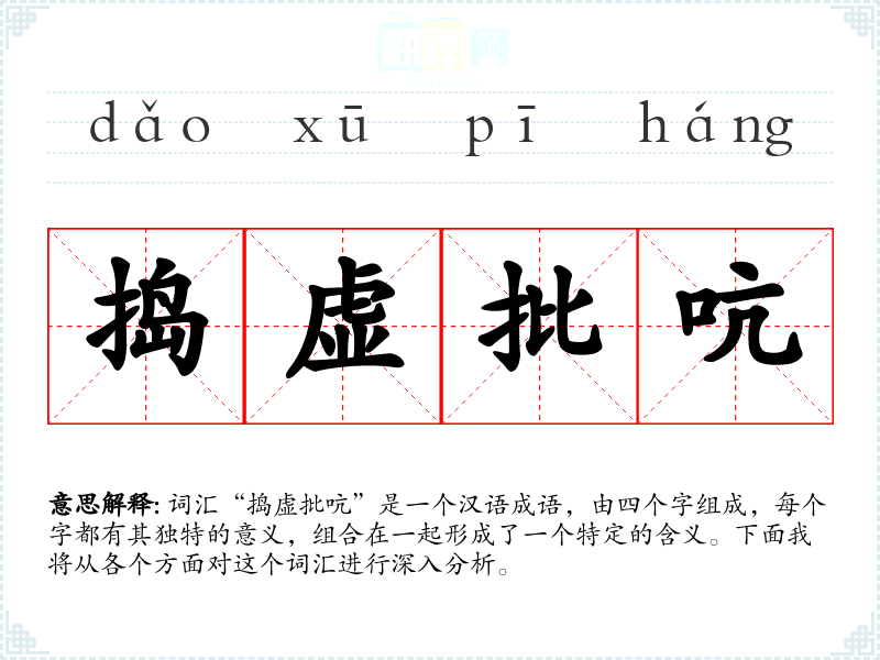 词汇“捣虚批吭”是一个汉语成语,由四个字组成,每个字都有其独特的意义,组合在一起形成了一个特定的含义。下面我将从各个方面对这个词汇进行深入分析。