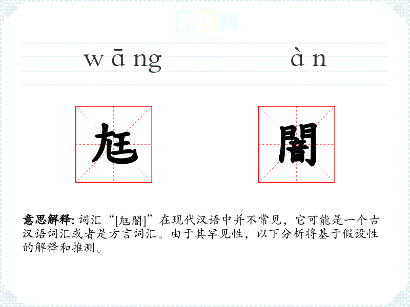 词汇“[尪闇]”在现代汉语中并不常见,它可能是一个古汉语词汇或者是方言词汇。由于其罕见性,以下分析将基于假设性的解释和推测。