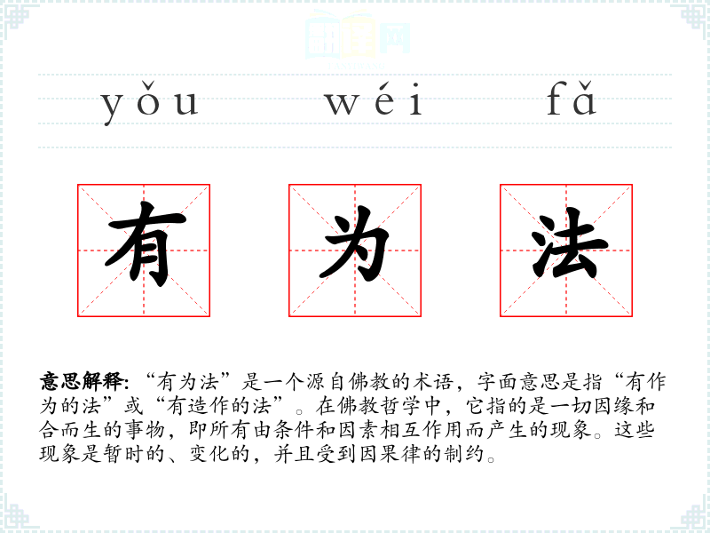 "有为法"的意思解释、有为法是什么意思由翻译网汉语词典查词提供。