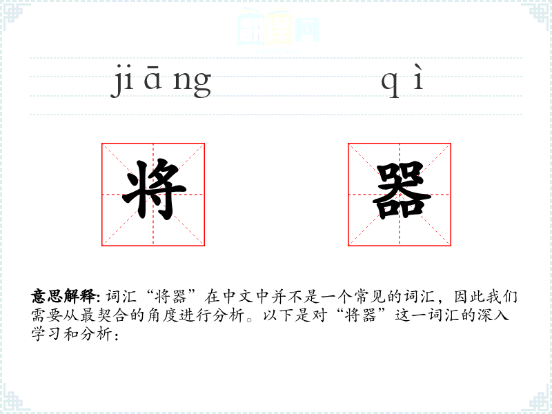 词汇“将器”在中文中并不是一个常见的词汇,因此我们需要从最契合的角度进行分析。以下是对“将器”这一词汇的深入学习和分析: