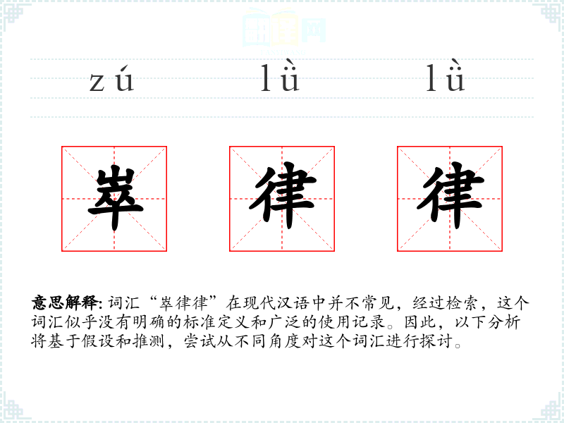 词汇“崒律律”在现代汉语中并不常见,经过检索,这个词汇似乎没有明确的标准定义和广泛的使用记录。因此,以下分析将基于假设和推测,尝试从不同角度对这个词汇进行探讨。