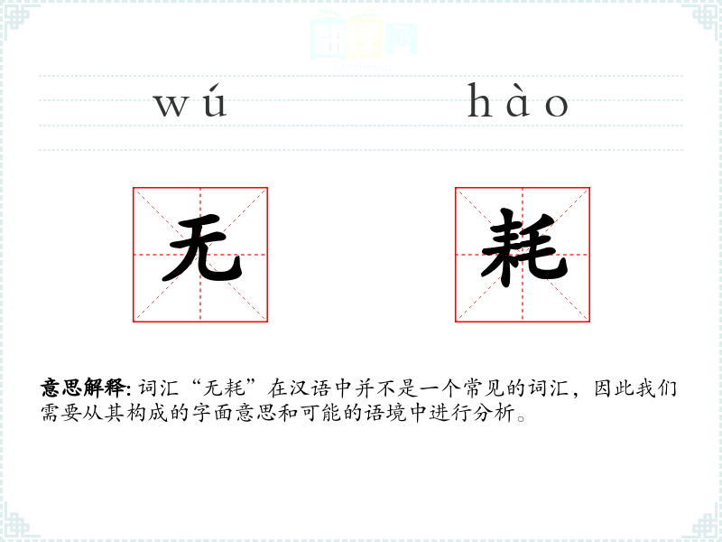 词汇“无耗”在汉语中并不是一个常见的词汇,因此我们需要从其构成的字面意思和可能的语境中进行分析。
