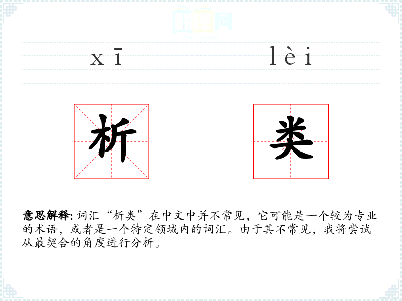 词汇“析类”在中文中并不常见,它可能是一个较为专业的术语,或者是一个特定领域内的词汇。由于其不常见,我将尝试从最契合的角度进行分析。