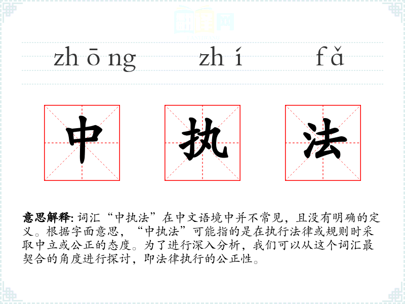 词汇“中执法”在中文语境中并不常见,且没有明确的定义。根据字面意思,“中执法”可能指的是在执行法律或规则时采取中立或公正的态度。为了进行深入分析,我们可以从这个词汇最契合的角度进行探讨,即法律执行的公正性。