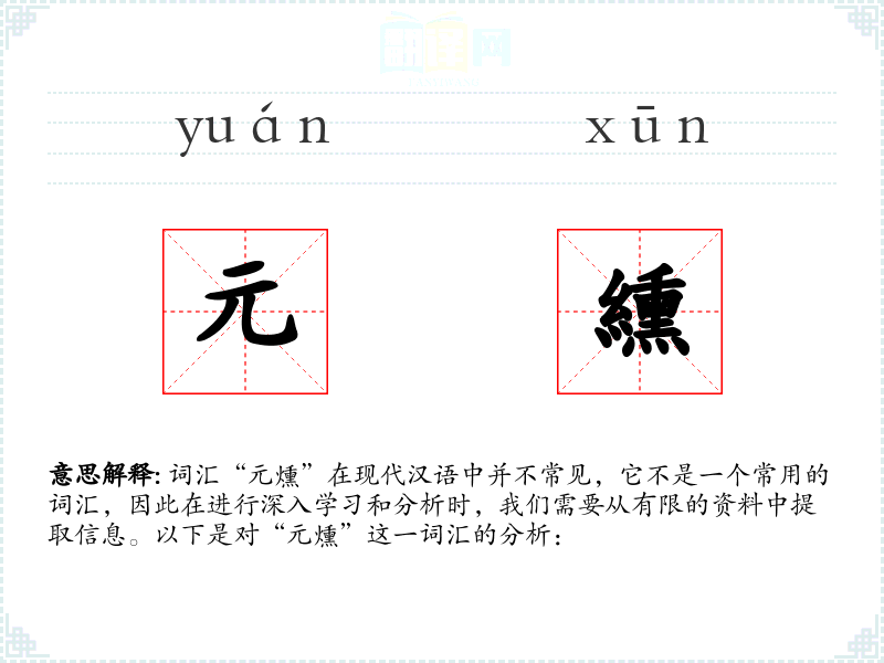 由于“元燻”不是一个常用词汇,其在不同语言或文化中的对应词汇及其使用情况的信息有限。