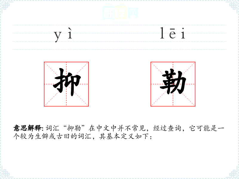 词汇“抑勒”在中文中并不常见,经过查询,它可能是一个较为生僻或古旧的词汇,其基本定义如下: