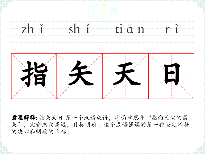 指矢天日 是一个汉语成语,字面意思是“指向天空的箭矢”,比喻志向高远,目标明确。这个成语强调的是一种坚定不移的决心和明确的目标。