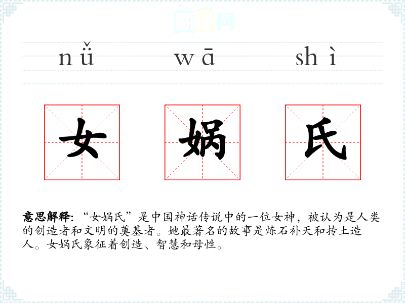 女娲氏的名称来源于古代神话传说,其字面意思可能与“女”(女性)和“娲”(一个古代部落的名称或特定的神话符号)有关。随着时间的推移,女娲氏的形象和故事在**文化中得到了丰富和发展。