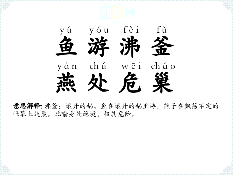 鱼游沸釜,燕处危巢的分字解释