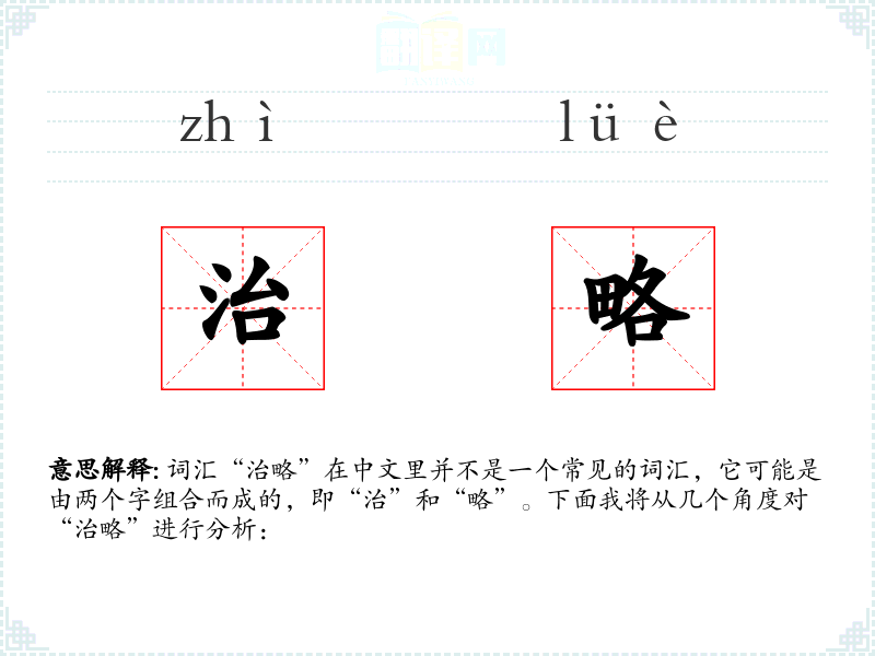 词汇“治略”在中文里并不是一个常见的词汇,它可能是由两个字组合而成的,即“治”和“略”。下面我将从几个角度对“治略”进行分析: