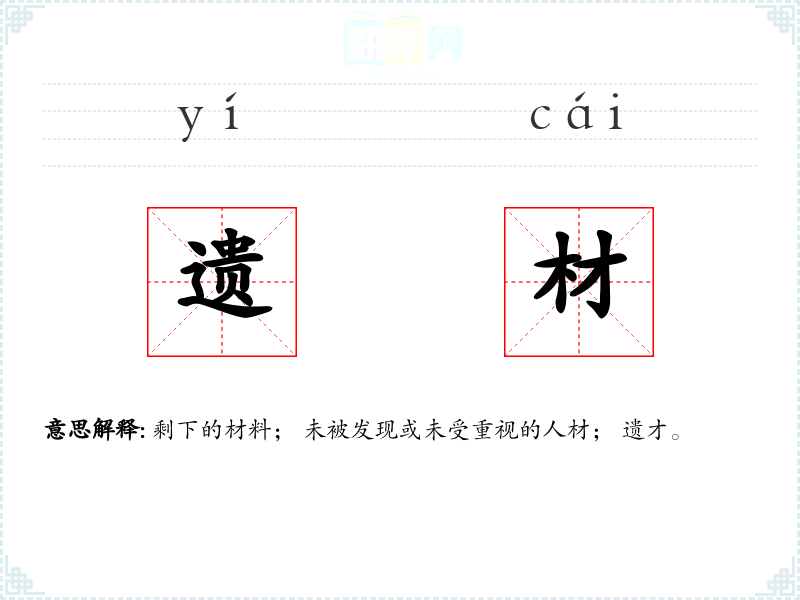 剩下的材料; 未被发现或未受重视的人材; 遗才。