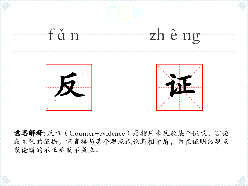 反证(Counter-evidence)是指用来反驳某个假设、理论或主张的证据。它直接与某个观点或论断相矛盾,旨在证明该观点或论断的不正确或不成立。