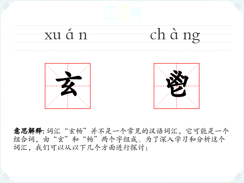 结合这两个字,“玄畅”可能指的是深奥而流畅的状态,或者是指在深奥的领域中能够顺畅地理解和表达。