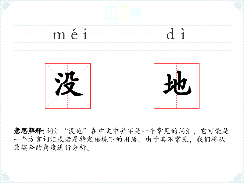 词汇“没地”在中文中并不是一个常见的词汇,它可能是一个方言词汇或者是特定语境下的用语。由于其不常见,我们将从最契合的角度进行分析。