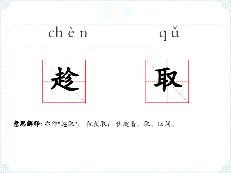 亦作"趂取"; 犹获取; 犹趁着。取,助词。