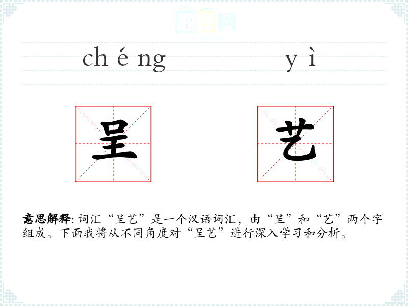 词汇“呈艺”是一个汉语词汇,由“呈”和“艺”两个字组成。下面我将从不同角度对“呈艺”进行深入学*和分析。
