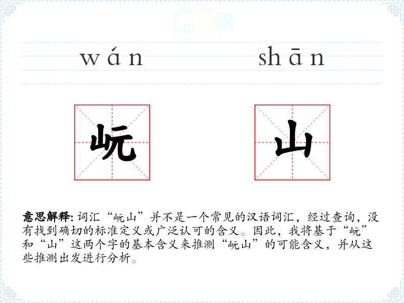 词汇“岏山”并不是一个常见的汉语词汇,经过查询,没有找到确切的标准定义或广泛认可的含义。因此,我将基于“岏”和“山”这两个字的基本含义来推测“岏山”的可能含义,并从这些推测出发进行分析。