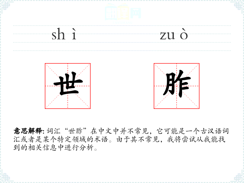 词汇“世胙”在中文中并不常见,它可能是一个古汉语词汇或者是某个特定领域的术语。由于其不常见,我将尝试从我能找到的相关信息中进行分析。