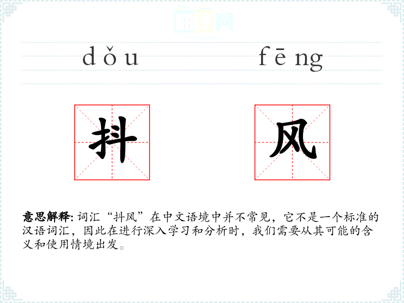 词汇“抖风”在中文语境中并不常见,它不是一个标准的汉语词汇,因此在进行深入学习和分析时,我们需要从其可能的含义和使用情境出发。