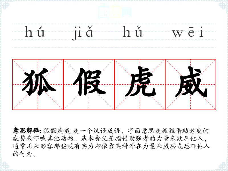 "狐假虎威"的意思解释、狐假虎威是什么意思由翻译网汉语词典查词提供。