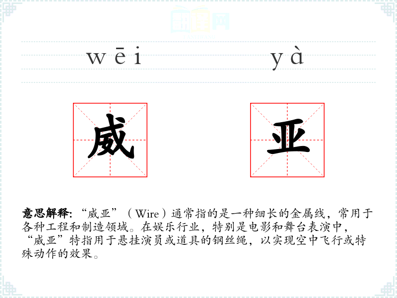 “威亚”一词源自英语单词“wire”,在中文中被广泛接受并用于特定行业。随着科技的发展,“威亚”的应用范围也在不断扩大。
