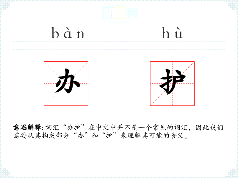 词汇“办护”在中文中并不是一个常见的词汇,因此我们需要从其构成部分“办”和“护”来理解其可能的含义。