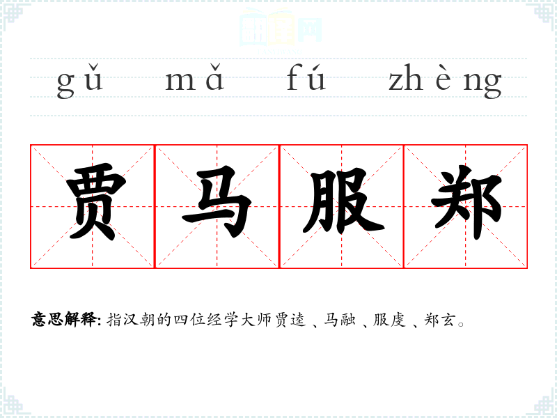 指汉朝的四位经学大师贾逵﹑马融﹑服虔﹑郑玄。
