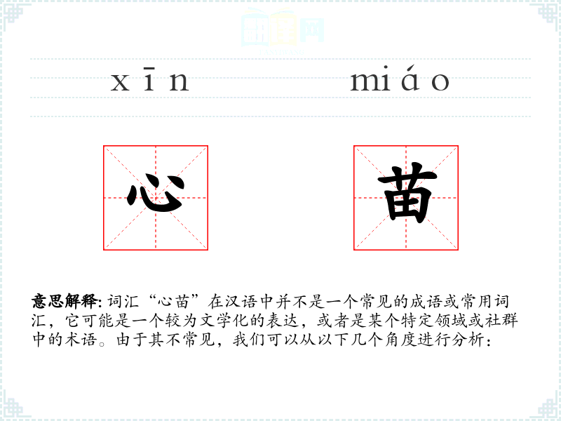 词汇“心苗”在汉语中并不是一个常见的成语或常用词汇,它可能是一个较为文学化的表达,或者是某个特定领域或社群中的术语。由于其不常见,我们可以从以下几个角度进行分析: