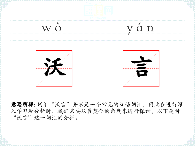 词汇“沃言”并不是一个常见的汉语词汇,因此在进行深入学习和分析时,我们需要从最契合的角度来进行探讨。以下是对“沃言”这一词汇的分析: